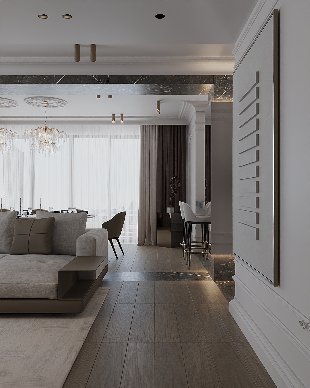 Апартаменты с потрясающим видом на сердце Vadistanbul. Спроектированы для мусульманской семьи: открытая кухня-гостиная, гостевая комната, две детские спальни, мастер-спальня с гардеробной, а также гостевая и мастер-ванные комнаты.